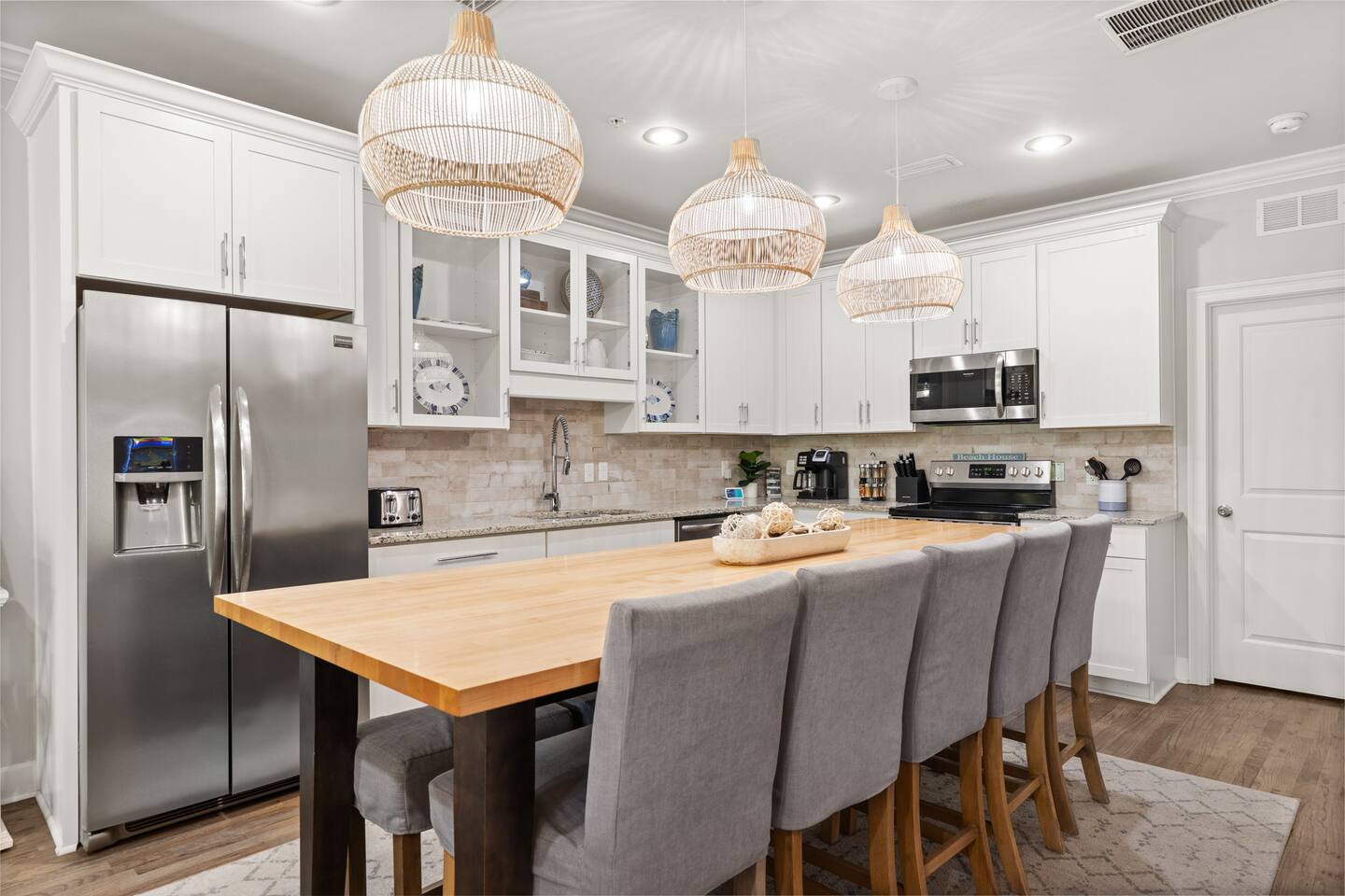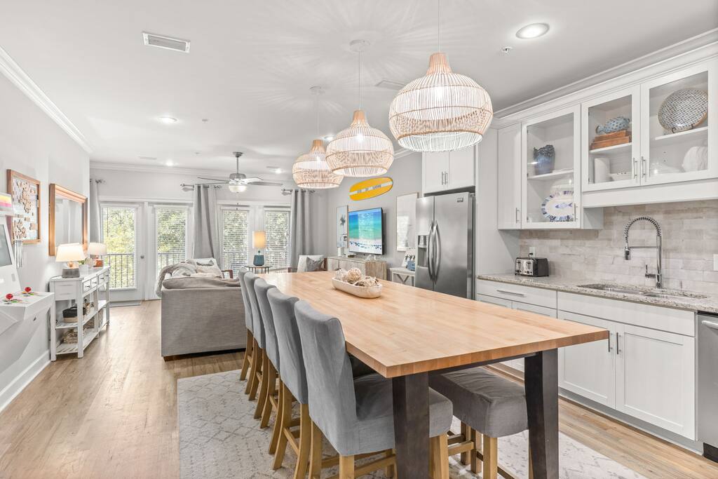 Welcome to Octopus’s Garden, our Beatles-themed haven in Destin/Miramar Beach. This luxurious beach home not only offers prime beach access but also a host of exclusive amenities for an unforgettable stay. Beach and Beyond A mere 5-minute walk takes you to the stunning beach near Pompano Joe’s. For added convenience and fun, use our complimentary 6-seater golf cart. We also provide beach toys so you can make the most of your time in the sand and sun. Local Attractions Galore Beyond the sugar sands and turquoise water, discover Silver Sands Premium Outlets or Destin Commons, dine at The Crab Trap, or enjoy family activities at The Track or Gator Beach. Golf lovers will find premier courses nearby, and nature enthusiasts can explore Henderson Beach State Park. Luxurious Indoor Comfort Featuring hardwood and tile flooring, a gourmet kitchen with granite countertops, stainless steel appliances, and new designer dining lights and coffee table upgrades. Entertainment abounds with HD TVs, Rokus, and Alexas in every room, plus a retro-style arcade console (Polycade Sente) with classic games and a giant wall Scrabble for family fun. Upon entering you’ll find a washer/dryer set for sandy items and the Yellow Submarine Room, with 4 custom bunk beds, submarine lights, and access to the back patio with a gas grill—perfect for a meal in. The main floor also includes a cozy living area with balcony, pull-out full bed for extra guests, and the Yesterday Room with king bed and private balcony. Upstairs, the While My Guitar Gently Weeps Suite boasts a king bed and 5-piece bathroom with soaking tub. Down the hall, a second washer/dryer set leads to the Hey Jude Room, another king suite with private bath and balcony. Exclusive Community Amenities Enjoy the neighborhood pool, heated seasonally during major holidays (Thanksgiving, Christmas, New Year’s). Dog-Friendly and Inviting We welcome canine companions—please inquire when booking. Book your stay at Octopus’s Garden NOW! Experience the perfect blend of luxury, convenience, Beatles charm, and now an exclusive retro arcade system that kids and adults will love. STR License: STR23-001701 Walton County Tourism Tax Registration: 41425 Max Occupancy: 12 Parking Max: 3 vehicles